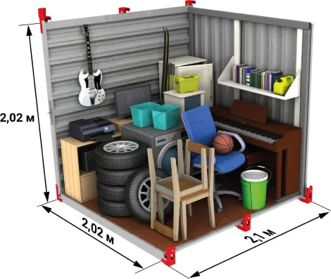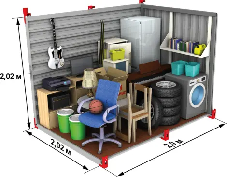Герметичный металлический бокс поддерживает приемлемые условия для специально упакованной мебели и стройматериалов, холодостойкого инвентаря. Все склады индивидуального хранения находятся под надежной охраной, оборудованы системами сигнализации и видеонаблюдения.